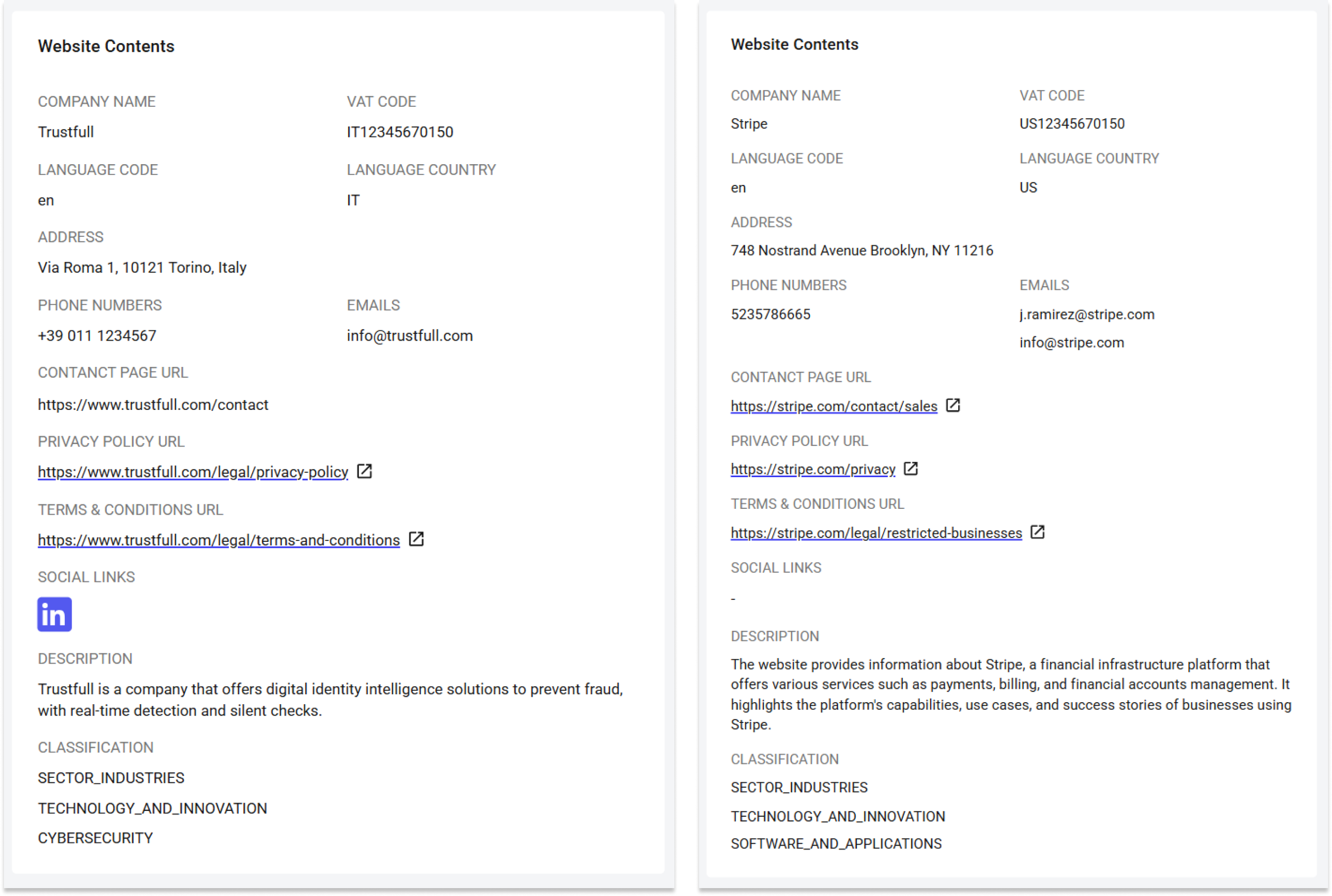 We launched a new AI agent inside Trustfull Domain: the Website Content Agent. This Agent can now parse raw websites to automatically extract company metadata including name, email, phone, VAT, social links, and more. This boosts Trustfull's Domain solution with complete and reliable company data.