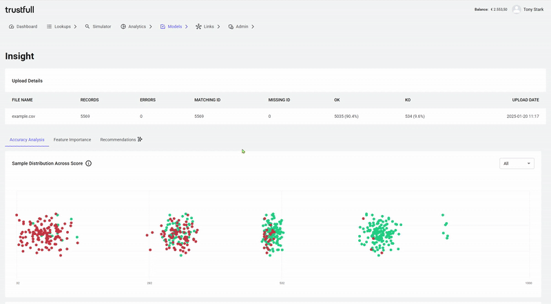 Trustfull lets enterprise customers tailor scoring models to their business needs. Rule Recommendations help you identify the best rules for your case and preview their effect on your data.