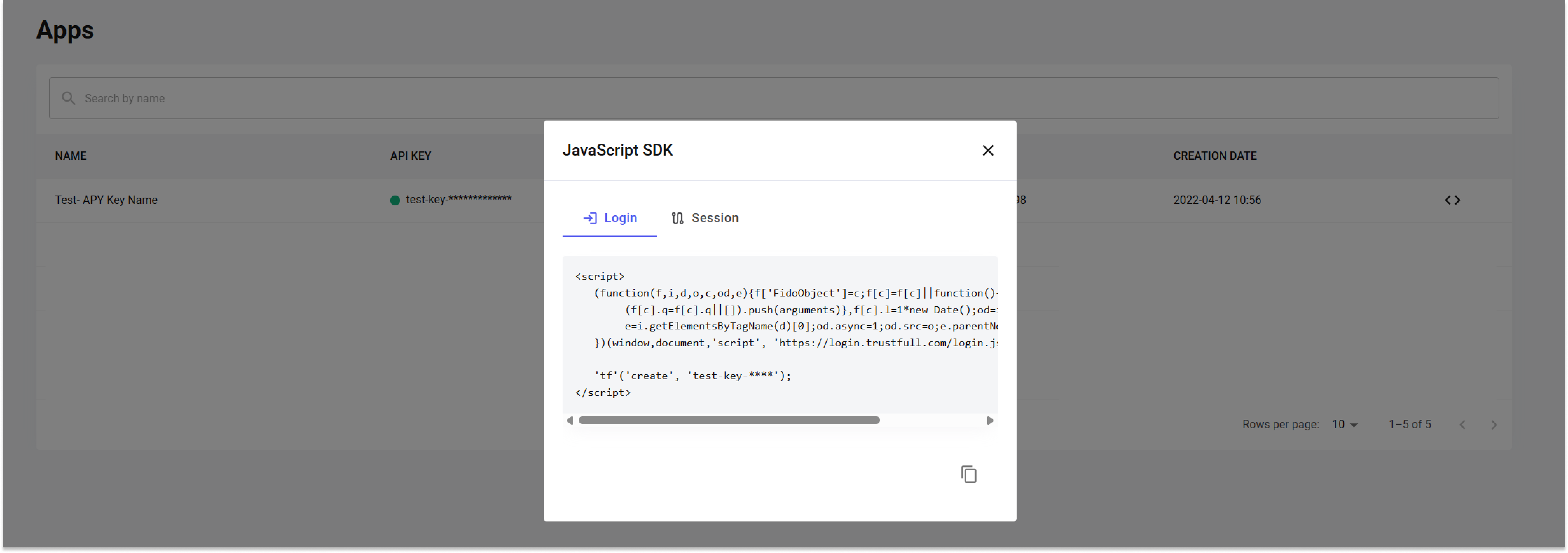 x-api-key: <your-api-key>Replace <session-id> and <your-api-key> with the actual sessionId and API key provided to you. Note that the API key is not the same as the JS key and must never be exposed in the frontend. It is a shared secret between your backend and Trustfull for authentication. For further details about this API call, refer to the API Documentation.