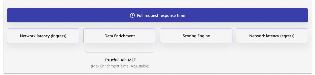 In Trustfull's API-based service, response time refers to the total available time for processing and responding to a request. This includes the time it takes for your request to reach our servers, be processed and answered, and for the response to return back to your server. max_enrichment_time and response time are two separate things.