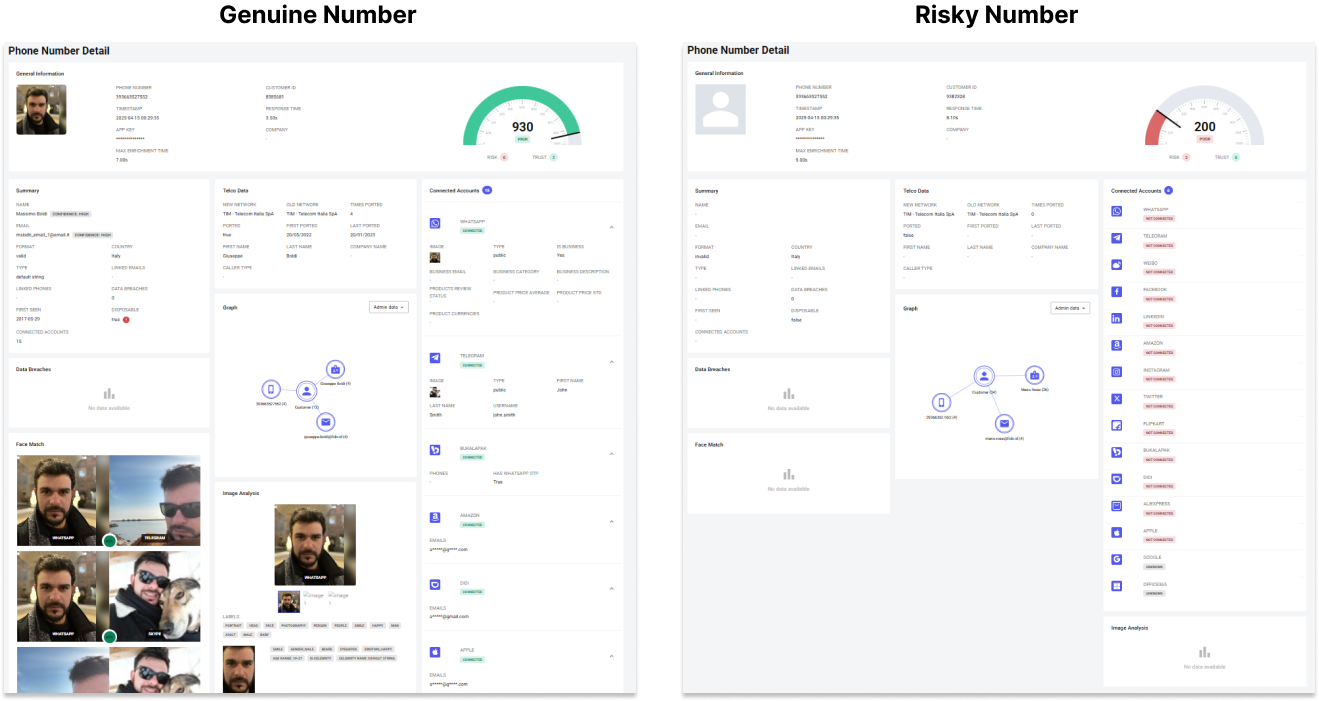 - High confidence in name and phone consistency across signals